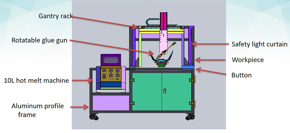 Questa macchina per colla a caldo dell'assis-foro adotta un design a pavimento in cavalletto, con un meccanismo rotante sull'asse Z, che è facile da installare e debug. Questa macchina adotta un modulo a cinghia sincrono e l'asse rotante utilizza un servo motore, che ha alta precisione, funzionamento stabile e basso rumore.